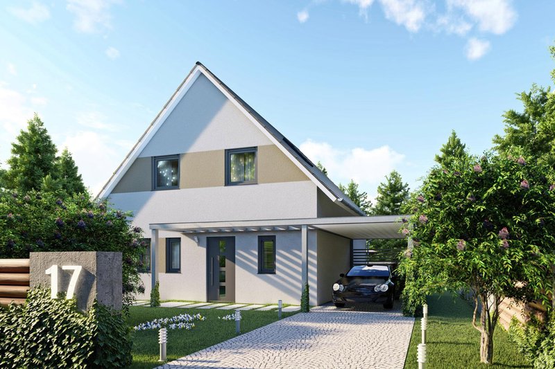 Wohnfläche: 136m² - Geschosse: 1 1/2 - Satteldach 38° - Außenmaße: 11,72m x 7,53m