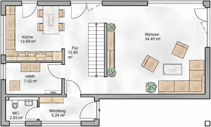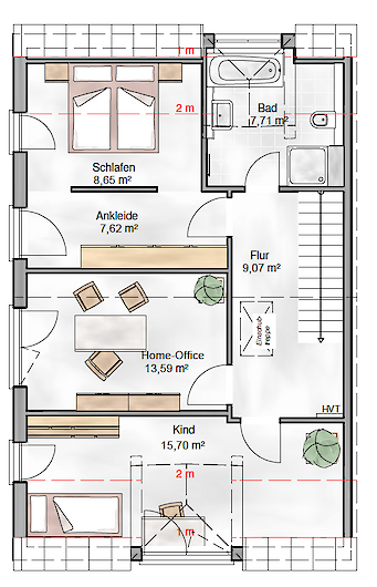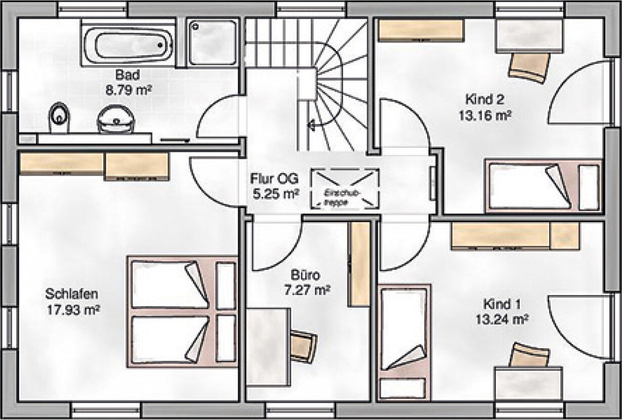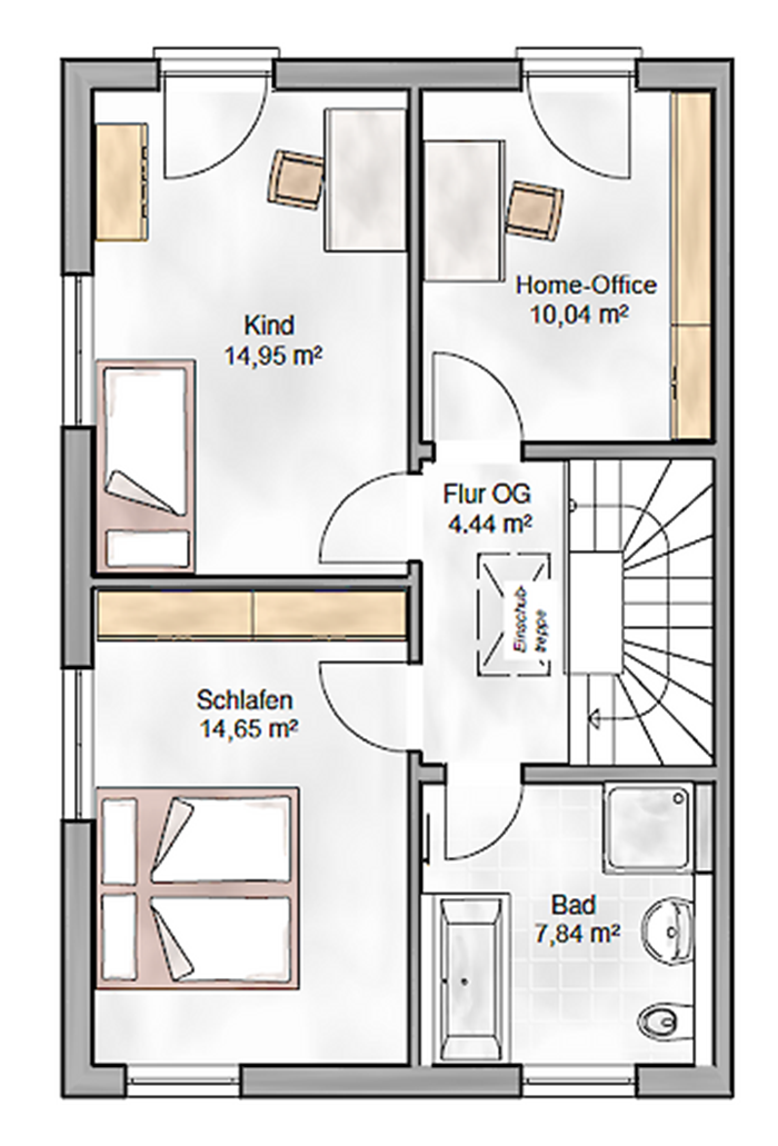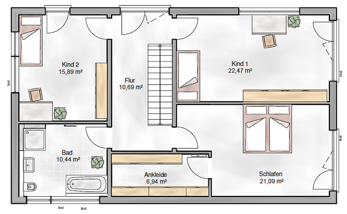 Wohnfläche: 107m² - Geschosse: 2 - Walmdach 25° - Außenmaße: 6,60m x 10,25m