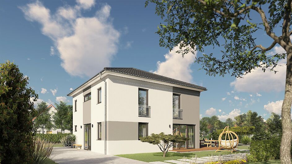 Wohnfläche: 121m² - Geschosse: 2 - Walmdach 25° - Außenmaße: 8,74m x 8,74m